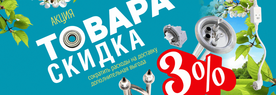 Теперь можно подойти к вопросу комплексно. Если вы хотите сразу заказать ТЭН с анодом для водонагревателя , насос для стиральной машины , компрессор для холодильника и комплект картриджей для воды , эта акция - отличный повод.